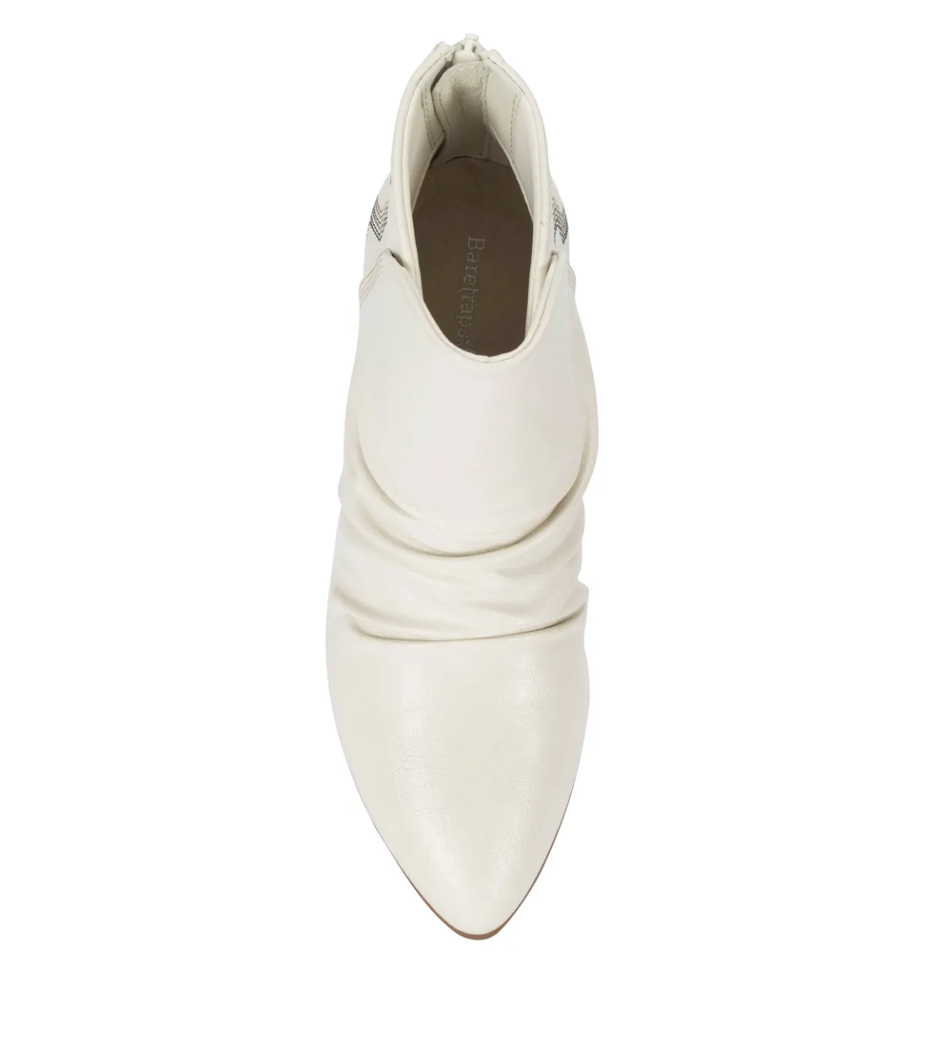 A fashion forward modern silhouette with a superior level of comfort, The Baretraps Leanna ankle bootie is ready for a action. Featuring a synthetic upper with a touch of fashionable rouching and stitching, along with a stacked heel with a zippered rear entry.