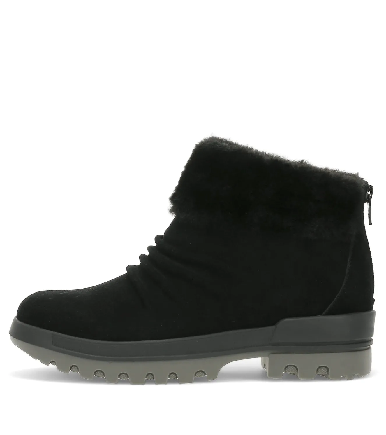 Conquer the cold in style with the Baretraps Nuri Cold Weather Bootie. Crafted with suede and faux shearling, these booties not only look chic but also provide unparalleled warmth and comfort.Weatherproof Technology ensures your feet remain dry and protected, even in the harshest of conditions. The water-resistant and weatherproof construction shields you from the elements, keeping you comfortable and confident as you navigate the winter landscape.Featuring a back zipper closure for easy on and off, the Nuri Booties make getting ready a breeze. The treaded sole provides exceptional traction, giving you the confidence to tackle any terrain, while the soft, cushioned lining envelops your feet in cozy warmth.Designed with an ankle-height silhouette and an interior side zipper, these versatile booties seamlessly complement your cold-weather wardrobe. Elevate your winter style and protect your feet with the Baretraps Nuri Cold Weather Bootie – the perfect fusion of fashion and function.