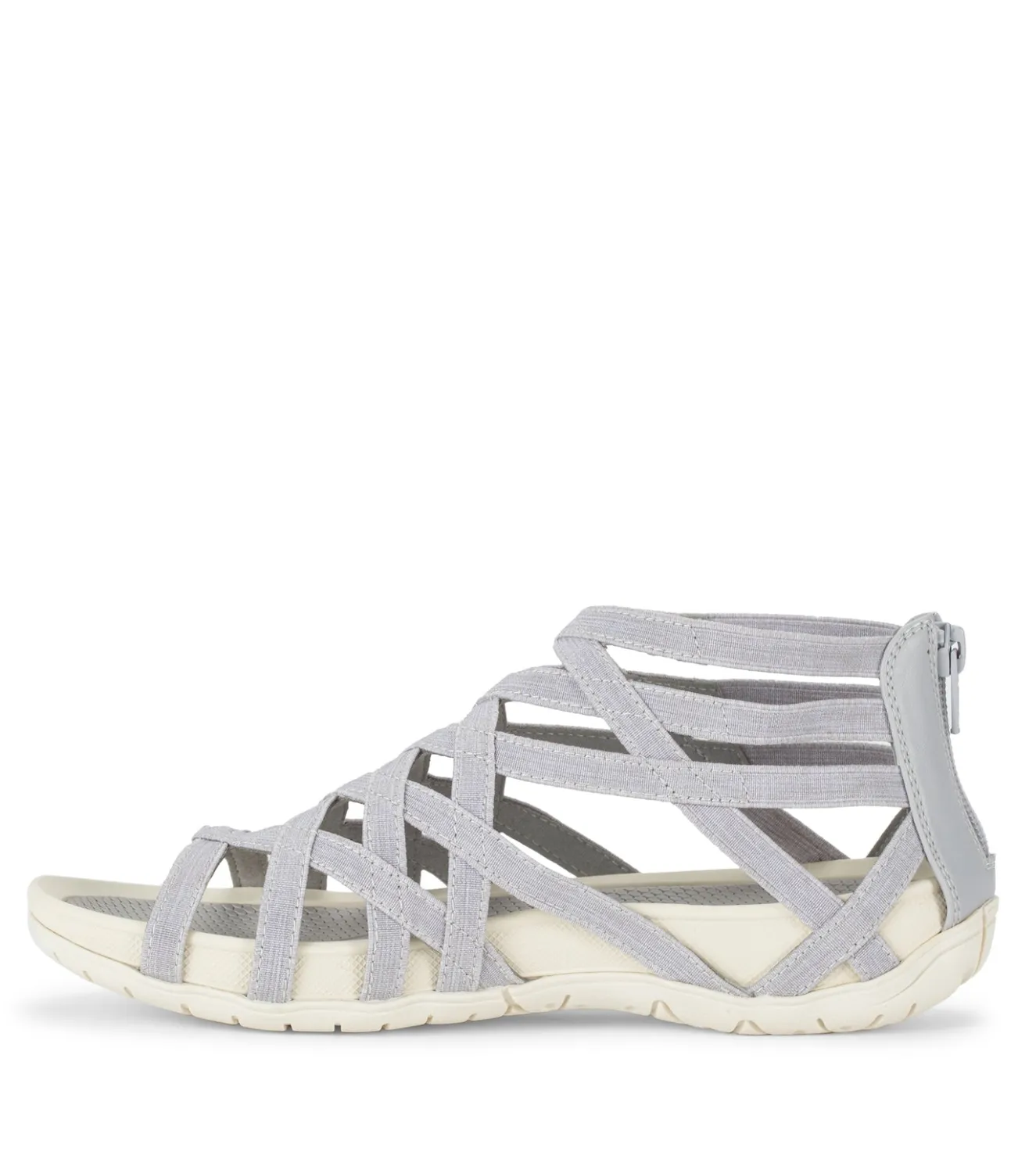 This stretchy, strappy sandal delivers athleisure comfort and style with our Rebound Technology. Its vibration-absorbing molded outsole is textured to guard against slipping, while its comfortable cushioned insole is equipped with a protective antimicrobial shield. With a zip of the Samina’s back-zip closure, you’ll be ready to tackle your busy day effortlessly.