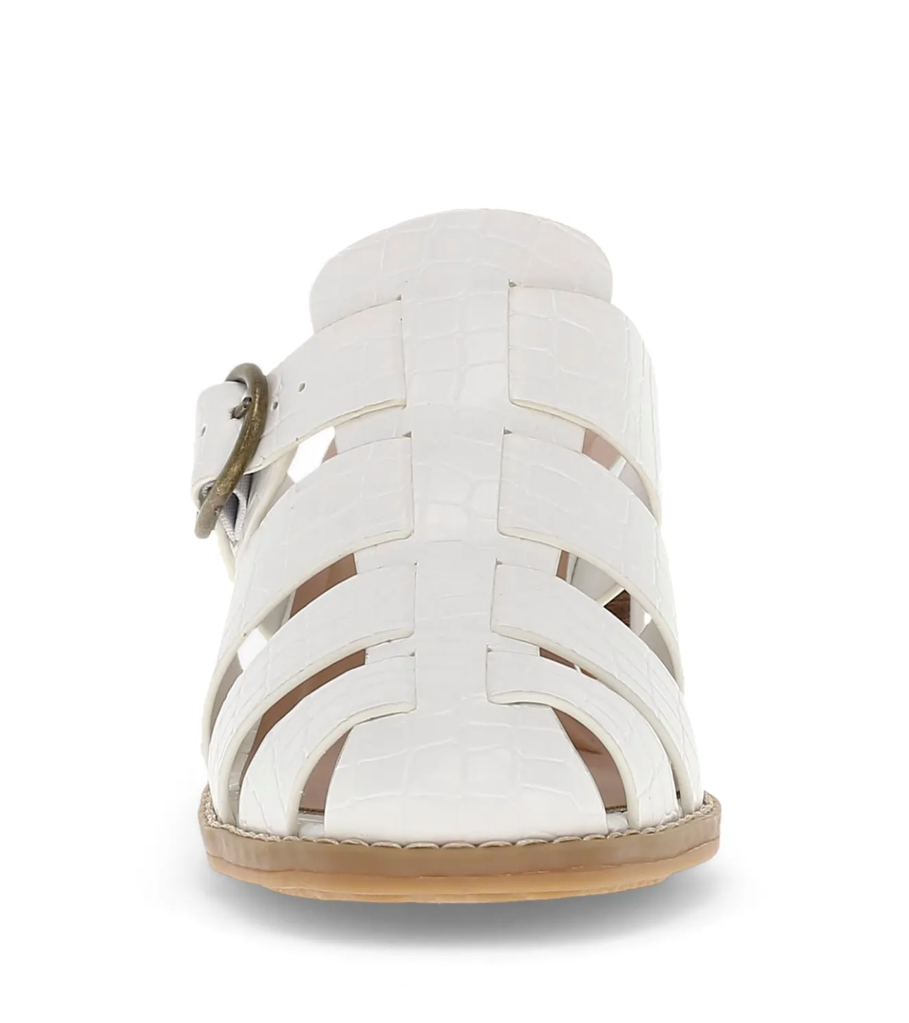 Step into modern elegance with Baretraps Whitnie block heel sandal. Featuring a closed toe design with with cross-hatched upper, the chunky block heel adds a touch of sophistication. Enjoy the comfort of a cushioned insole and easy movement with the flexible outsole. Slip-resistant properties ensure stability and a rounded toe provides a classic look. Dress this style up with a pair of slacks or go casual with a breezy dress.